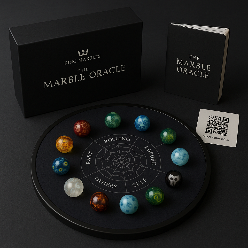King Marbles is evolving into a fully interactive, AI-enhanced board game where each marble becomes a living character with its own voice, traits, and destiny. Players roll real or digital marbles onto a beautifully illustrated Oracle Board, where their landing positions determine story outcomes, quests, and rewards.